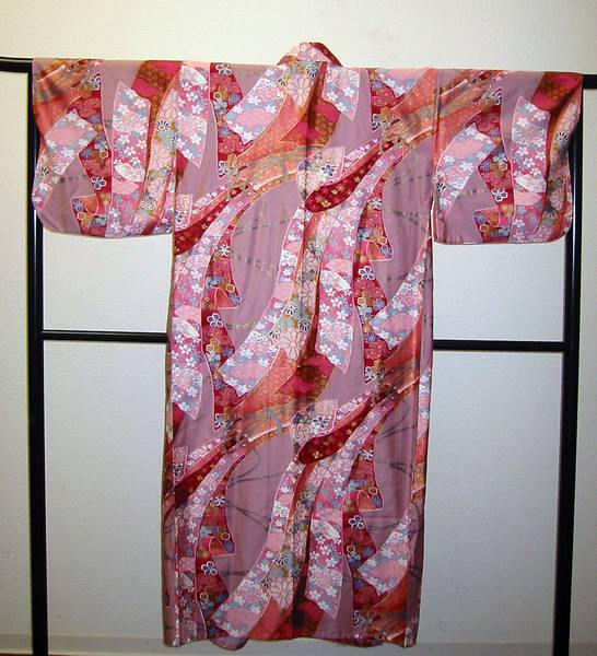 | Japanischer Kimono im traditionellen Schnitt mit Gürtel. Material: 100 % Baumwollsatin.