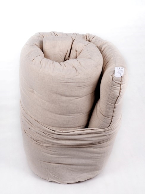 Der kleine, leichte und flexible Futon im Fixmaß 80 x 200 cm, zum mitnehmen oder für die Gäste platzsparend Zuhause. Im praktischen Beutel gerollt zum Verstauen und für den sauberen und sicheren Transport. Die insgesamt 4 Lagen Baumwolle reichen für das gelegentliche Schlafen ohne große Ansprüche an Komfort. Baumwollfutons sollten mindestens 1 x pro Woche gewendet werden, damit sich die Füllung etwas auflockern kann. Der Futon ist aufgrund seiner Festigkeit auch für Meditation und SHIATSU-Behandlungen geeignet. |