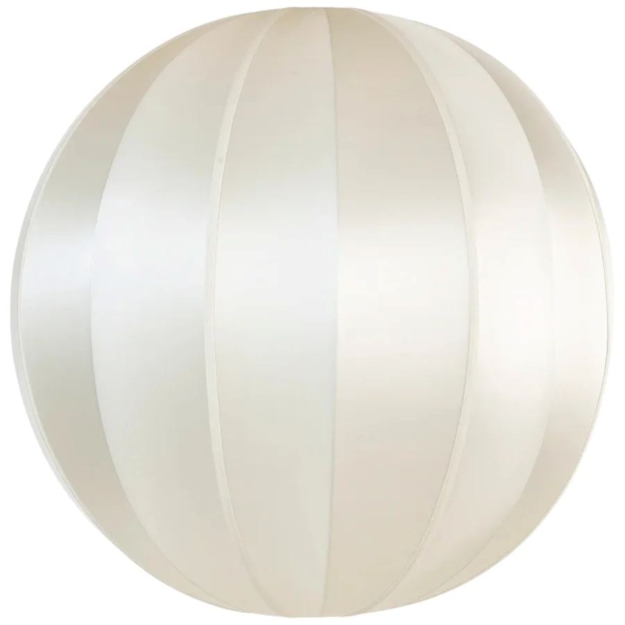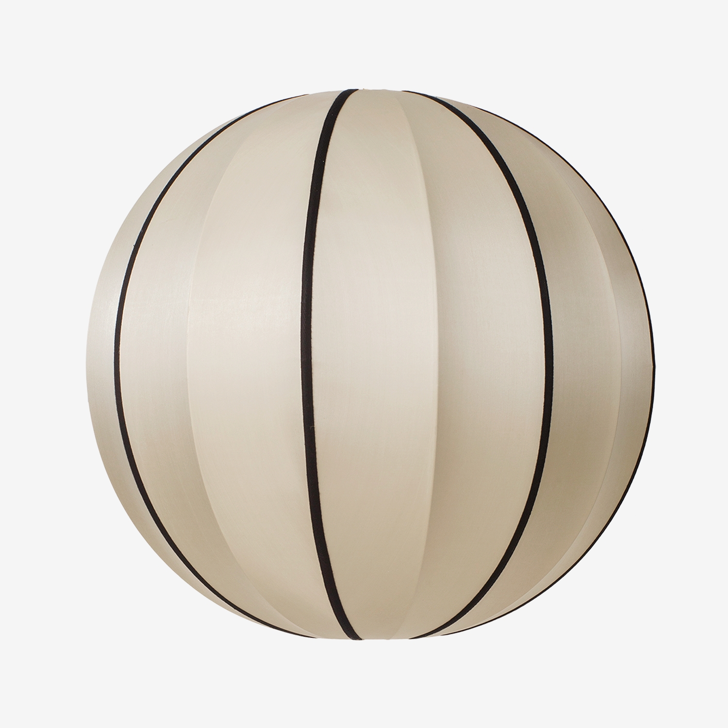 Kugelförmiger Lampenschirm bespannt in reiner oder Off-White Seide und einer Auswahl an farbigen Baumwollbändern, die von oben bis unten verlaufen. In 3 Größen erhältlich. Lampenpendel und Fassung sind nicht im Lieferumfang enthalten.